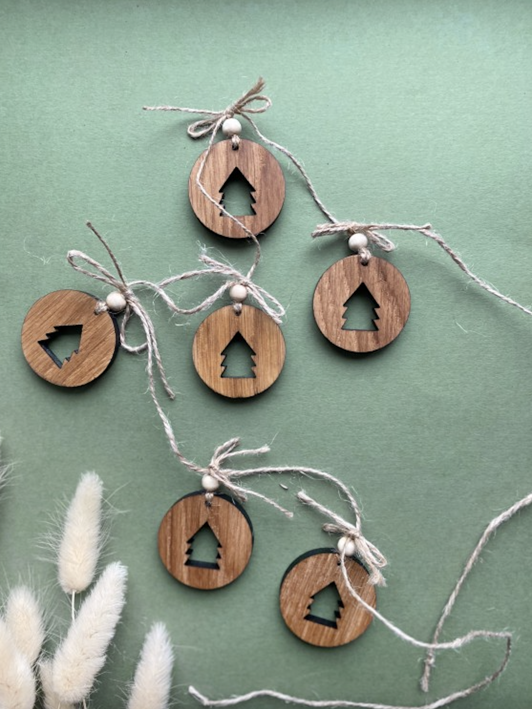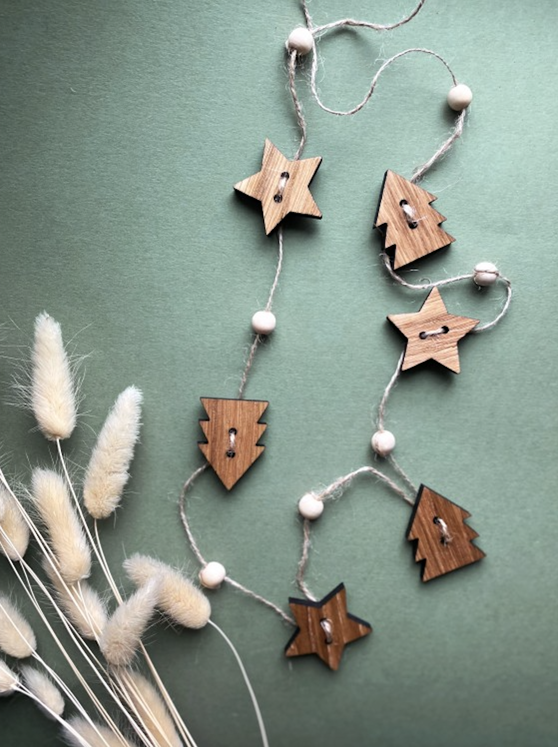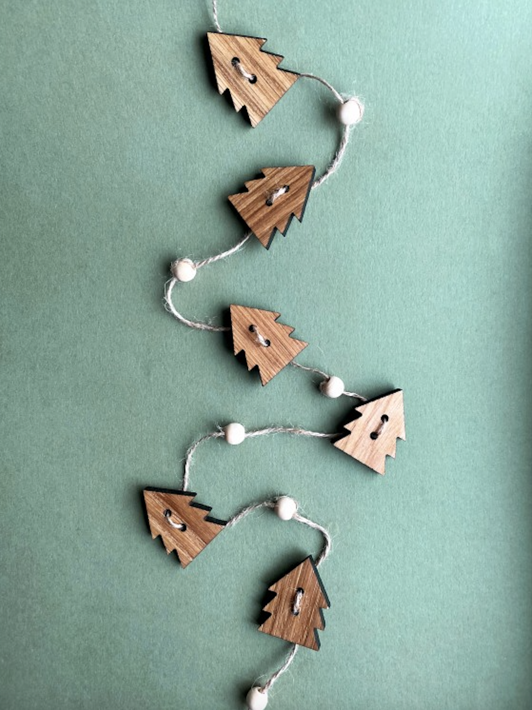 Для создания уютной и теплой атмосферы мы отобрали в наш новогодний ассортимент миниатюрные деревянные гирлянды с елочками из натурального дуба ручной работы.