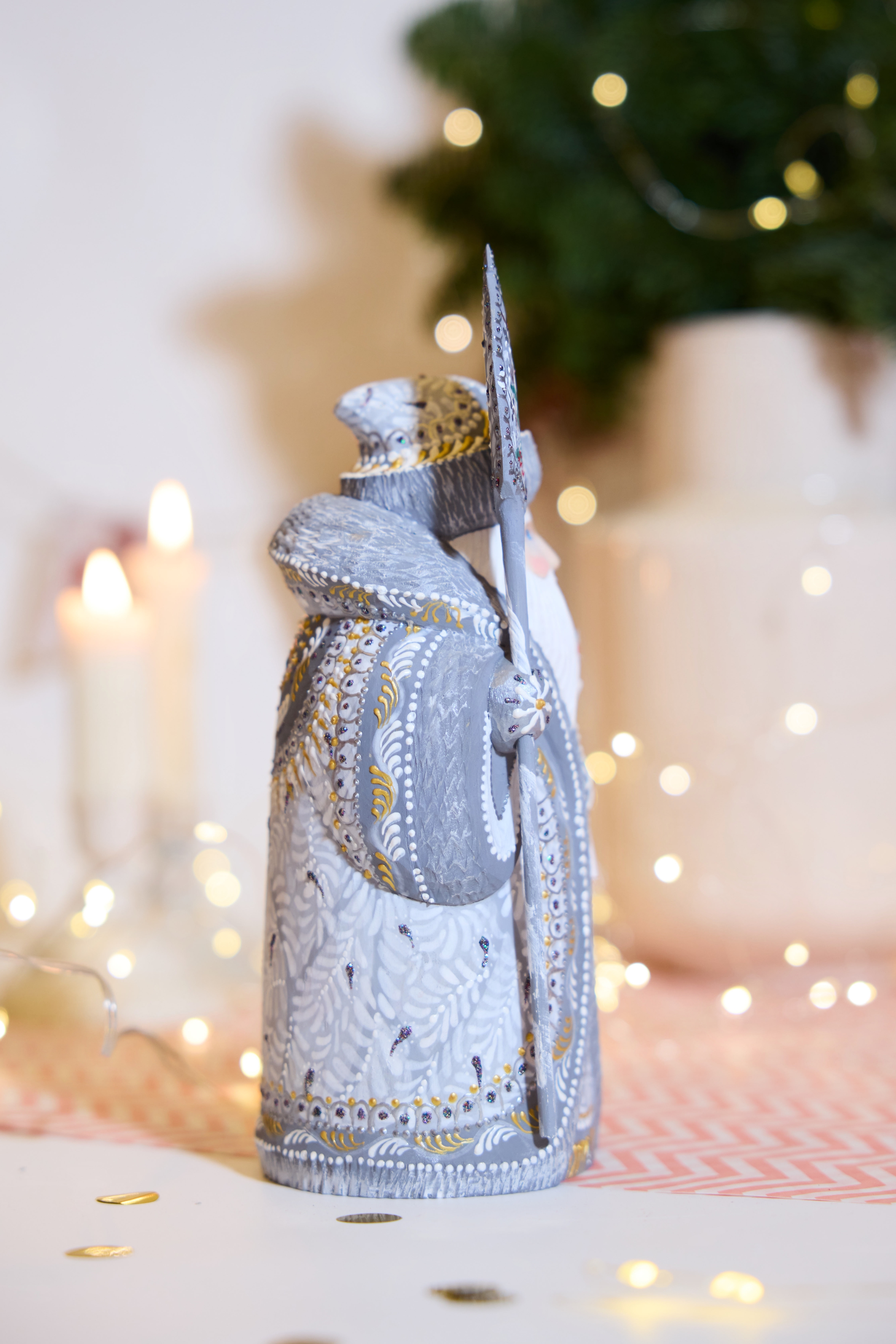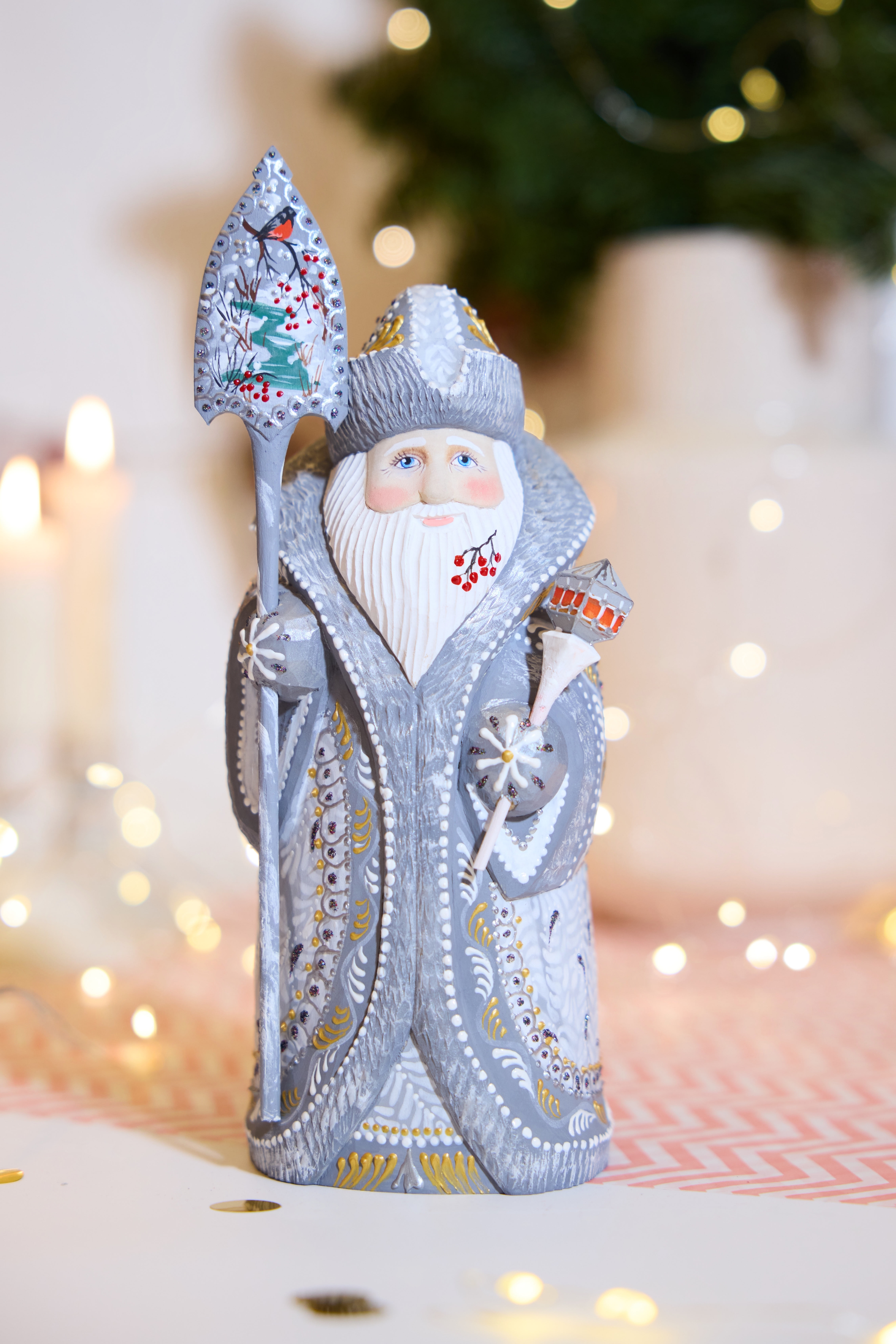 Деревянный Дед Мороз с посохом, ручная работа, 22 см, Россия