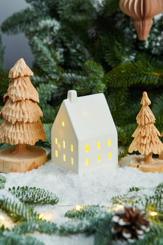 Домик-подсвечник "Магический свет" из неглазурованного фарфора, белый, 7х12 см, ручная работа, Германия
