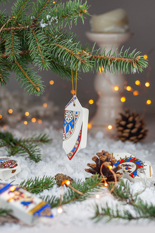 Елочная игрушка из фарфора "Конфета Скоморохи", надглазурное деколирование с элементами ручной росписи, 3х1,5х9 см, Россия