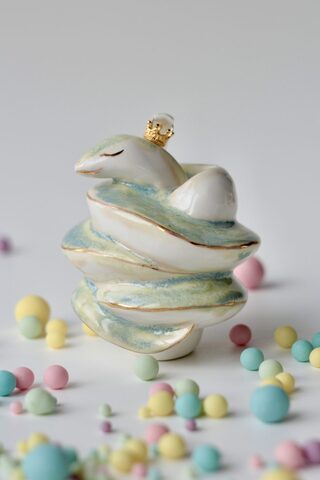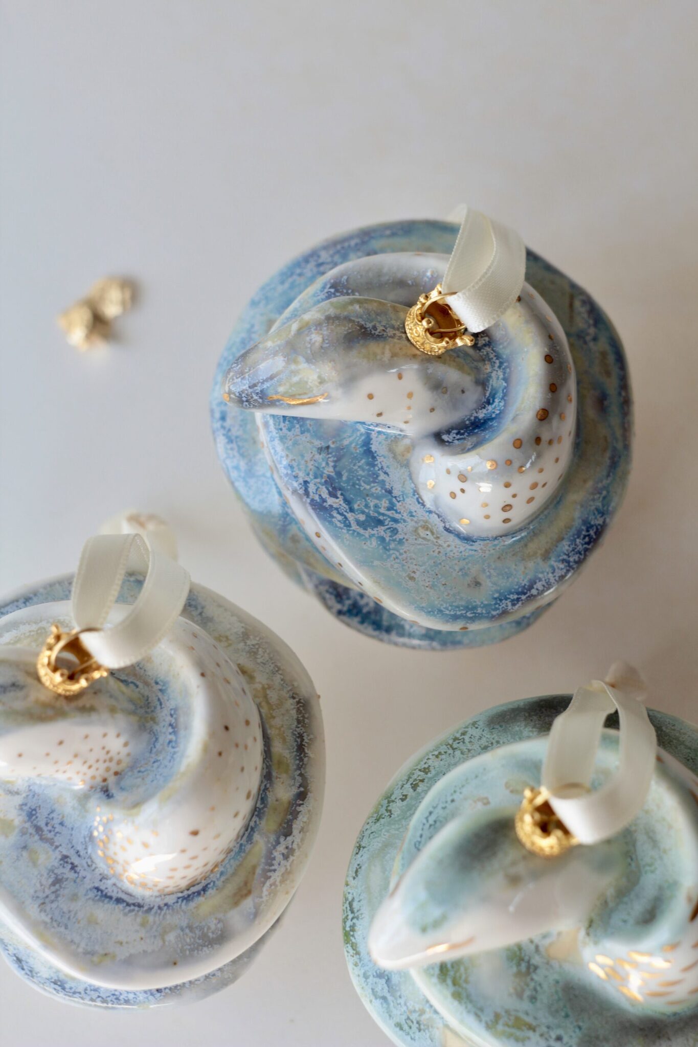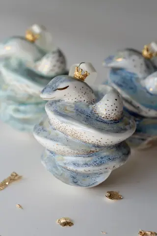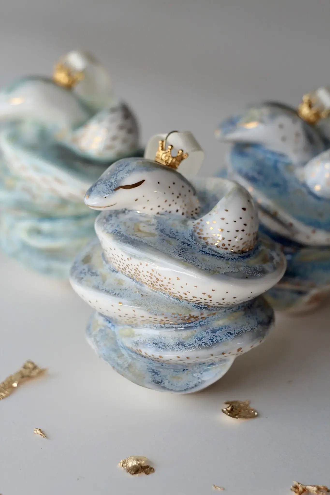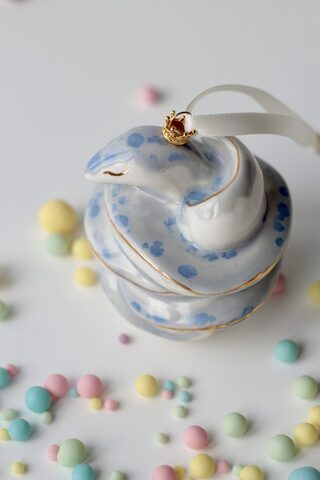 Елочная игрушка из тонкостенного фарфора "Змейка", 7х6 см, ручная работа, Россия