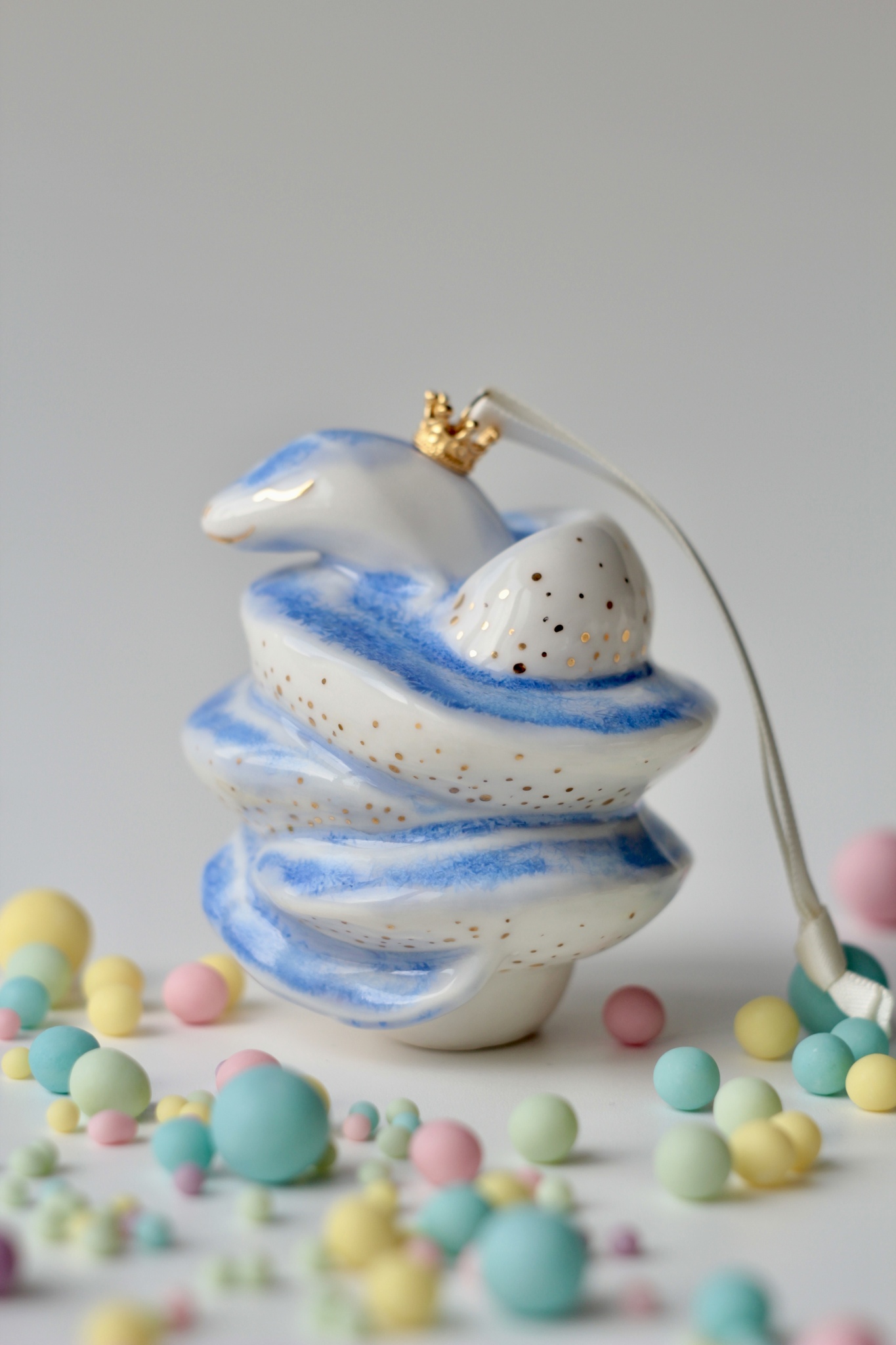 Фарфоровая елочная игрушка "Змейка", 7х6 см, Россия