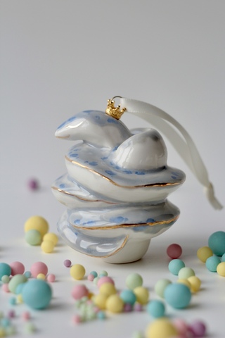 Елочная игрушка из тонкостенного фарфора  — авторское украшение, созданное в небольшой московской мастерской.