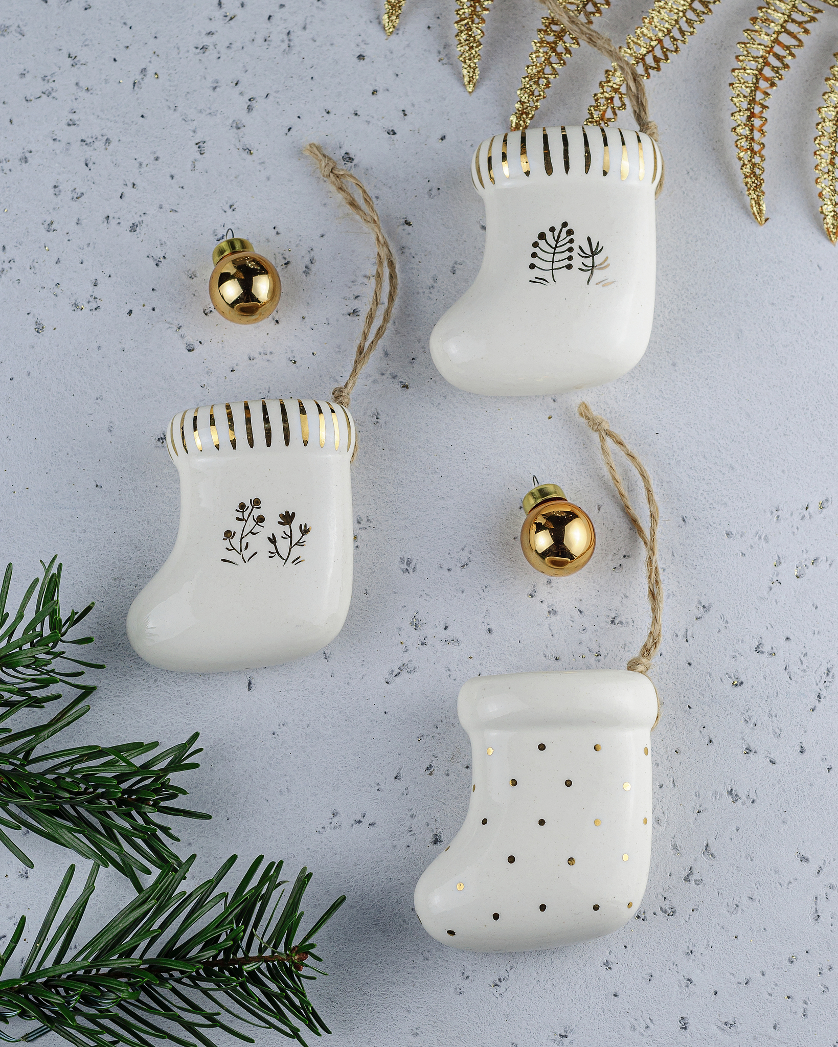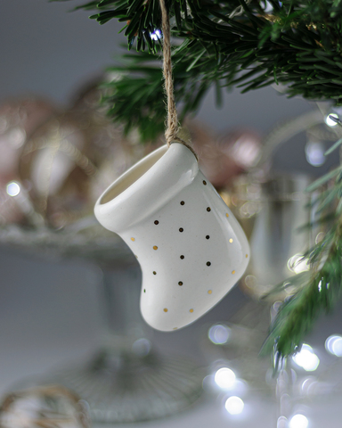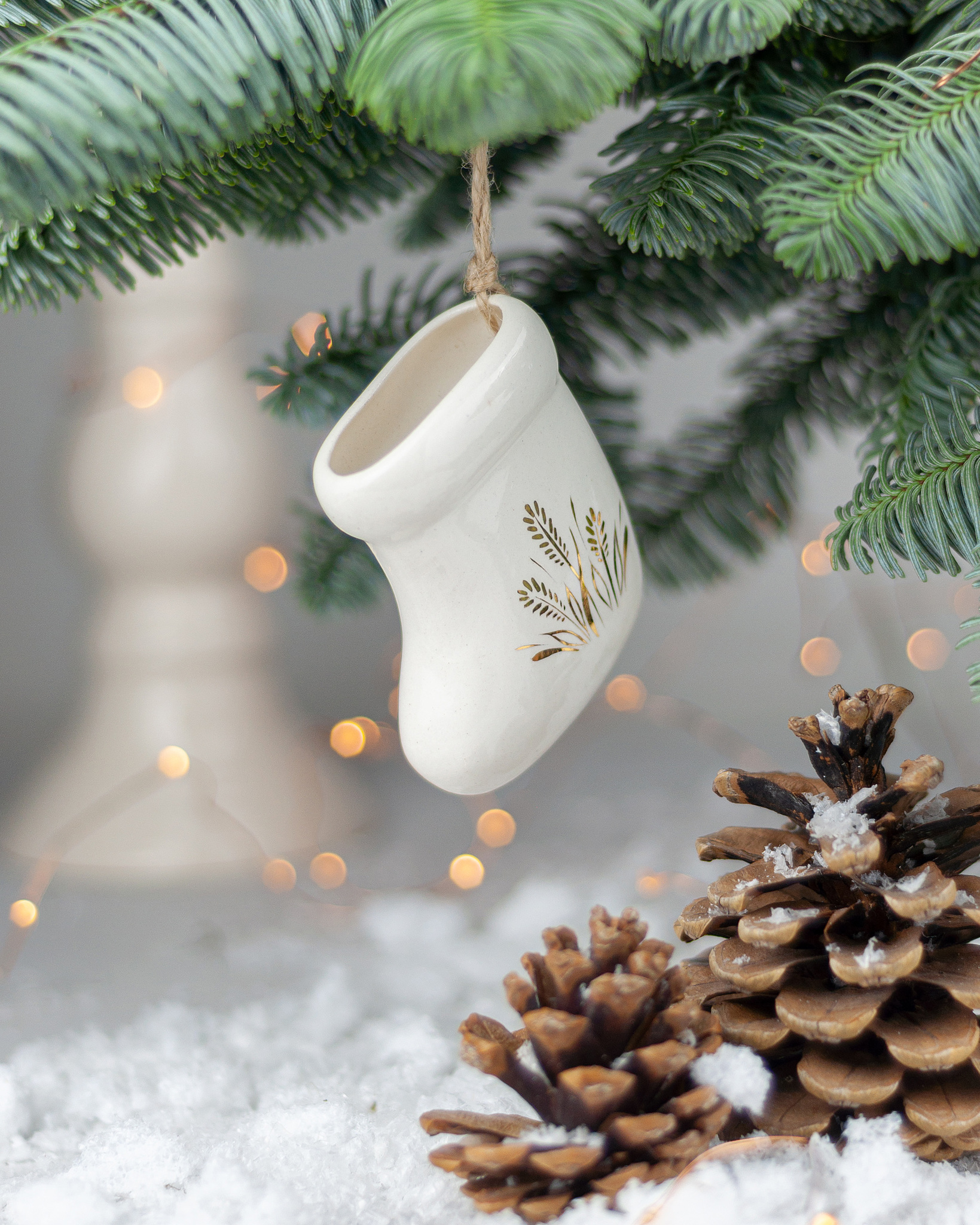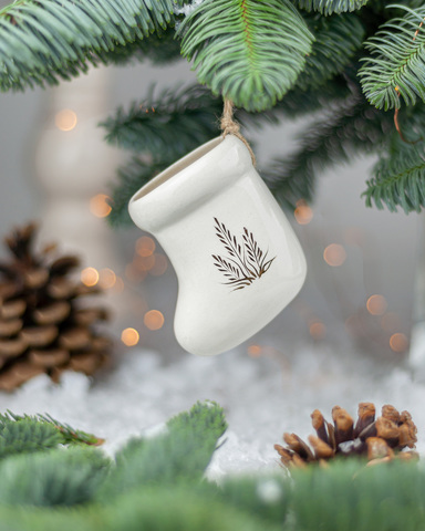 Фарфоровая елочная игрушка "Валенок", ручная работа 6х4 см, Россия