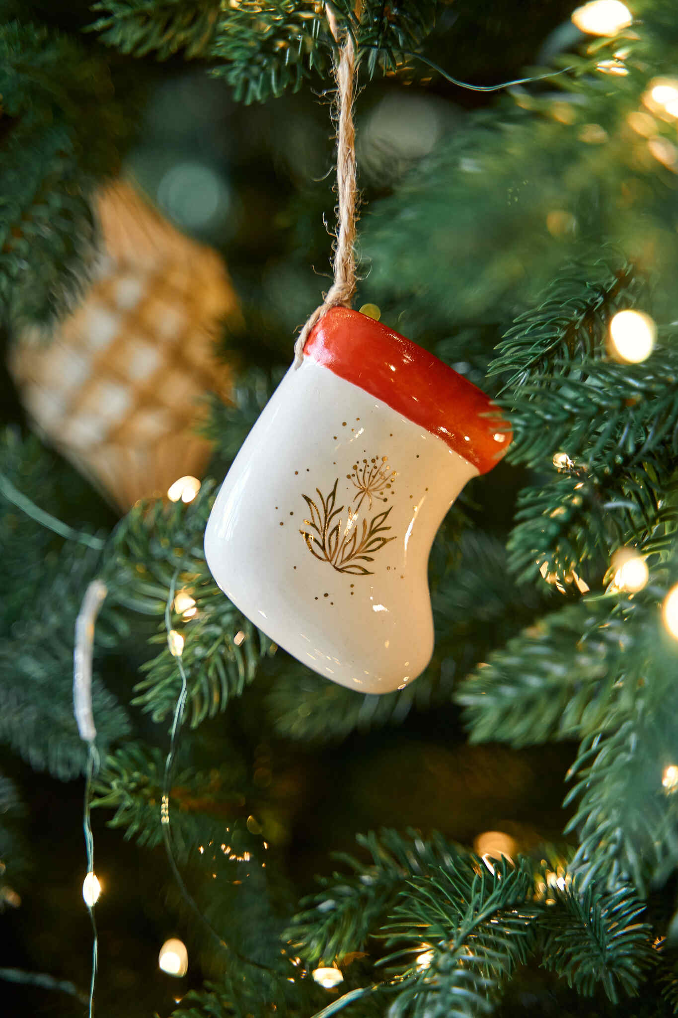 Фарфоровая елочная игрушка ручной работы «Валенок», 6х4см, Россия