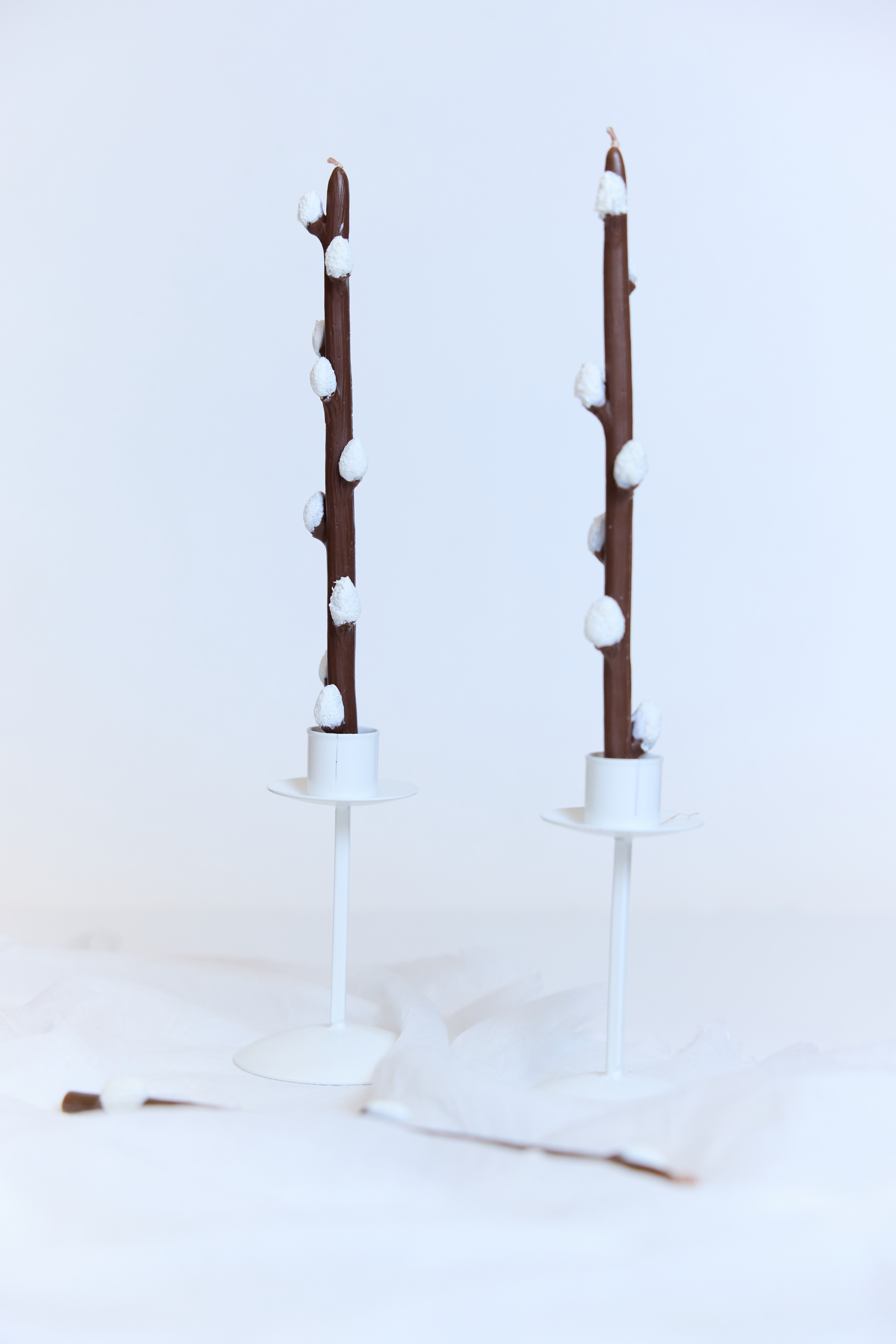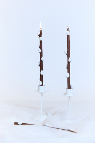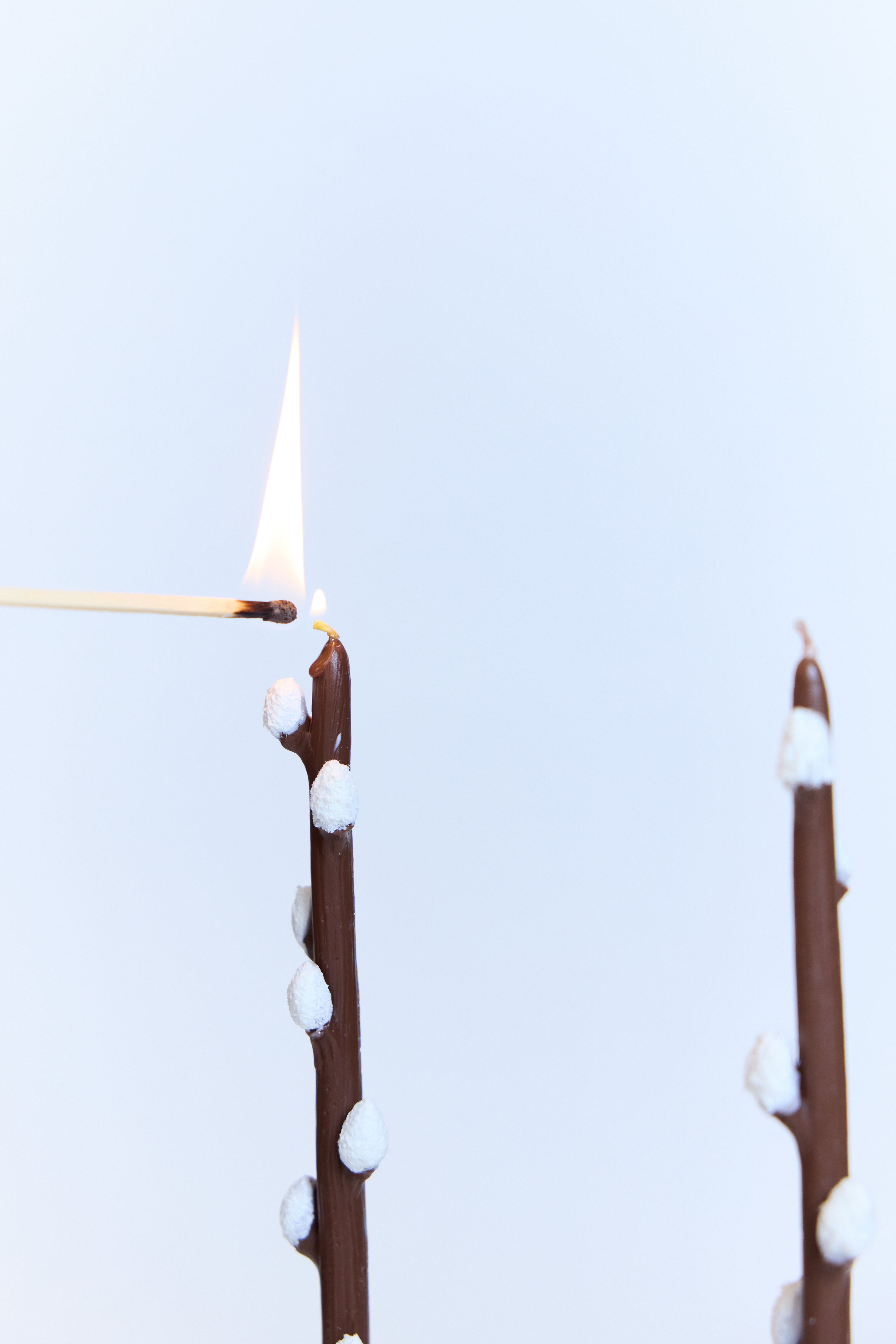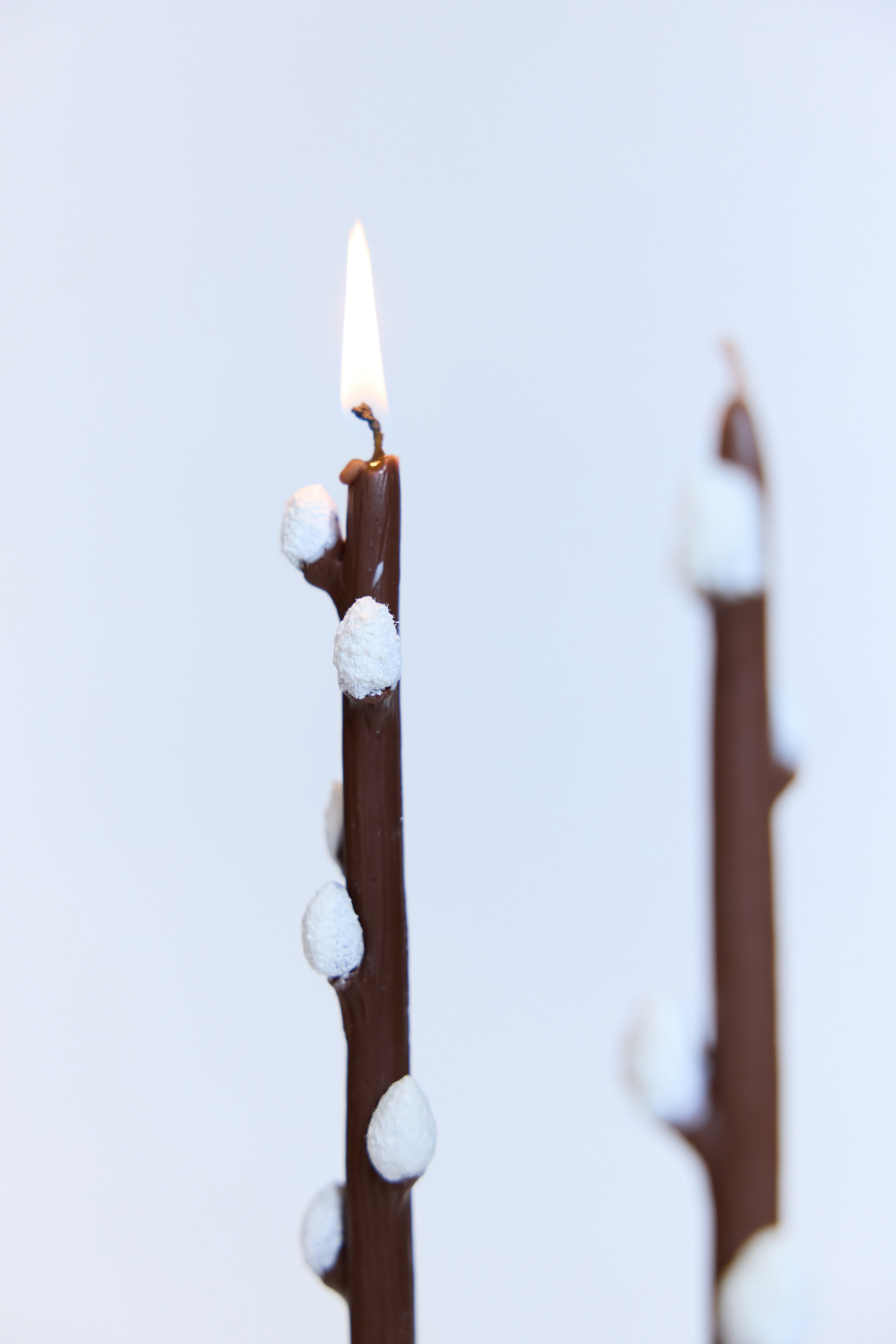 С этим отлично справится свеча из натурального пчелиного воска в форме веточки вербы.