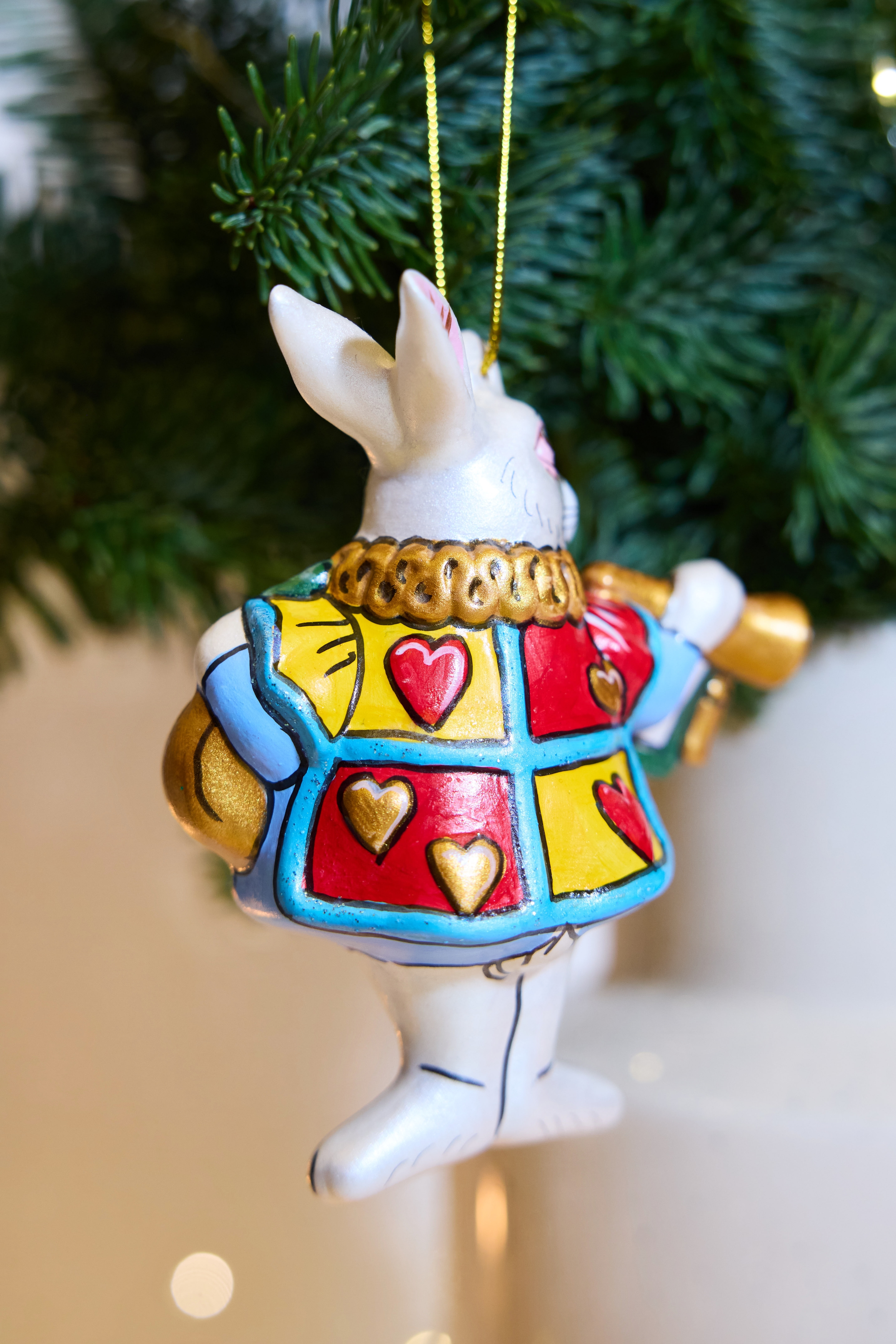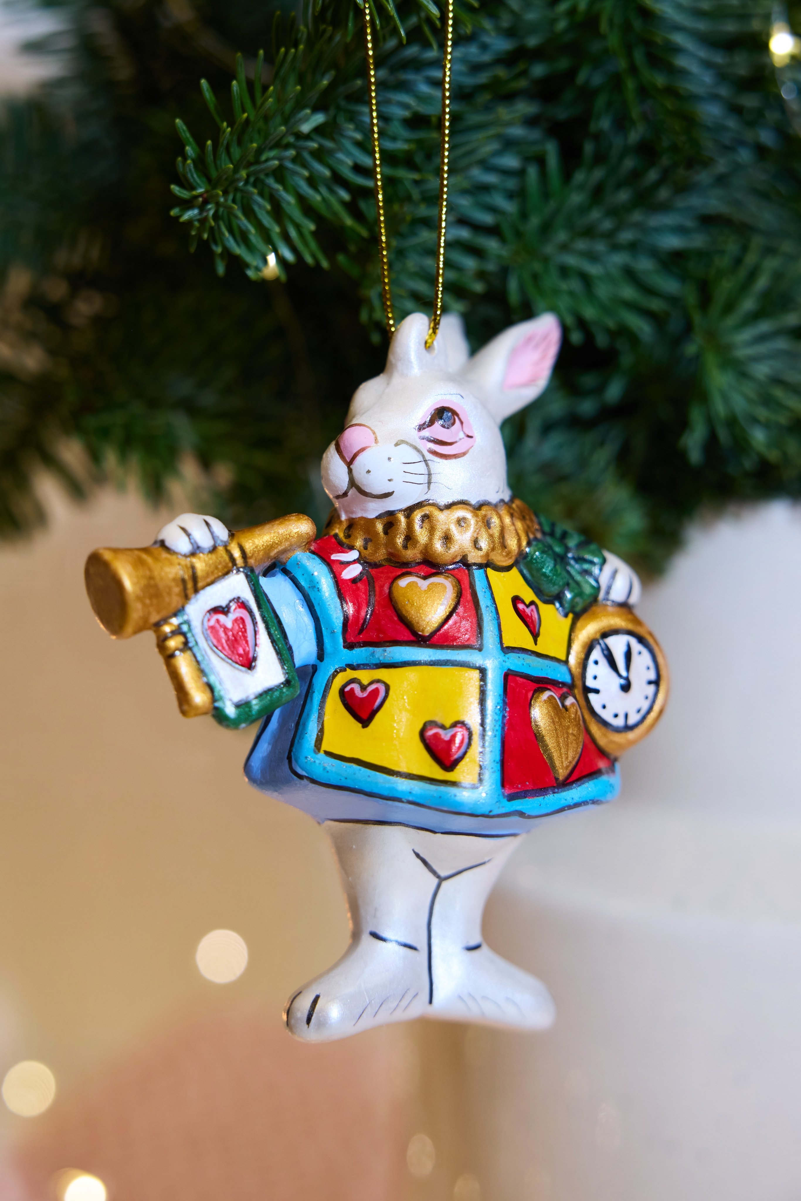 Керамическая елочная игрушка "Белый кролик", 9х9 см, ручная работа, Россия