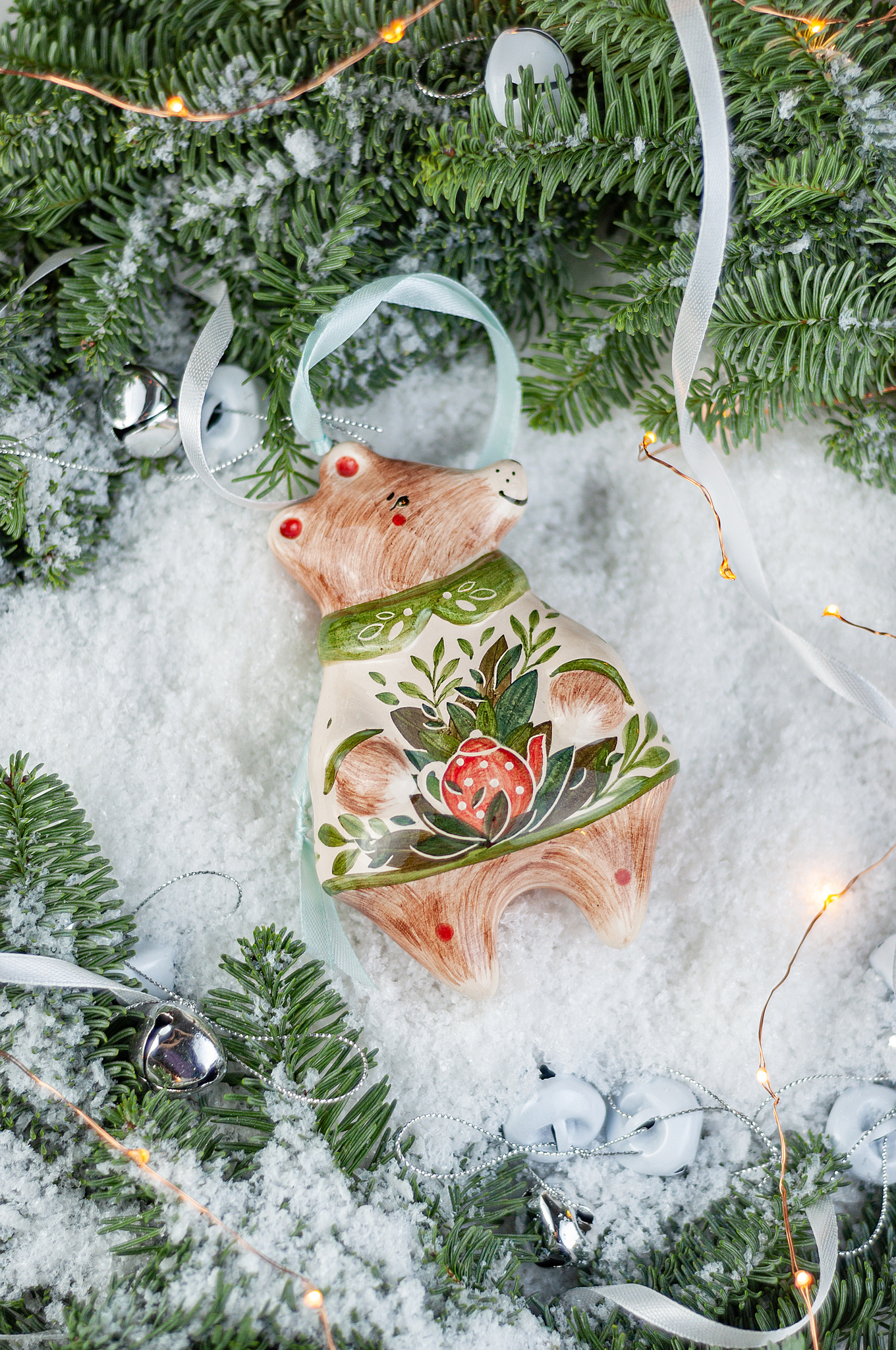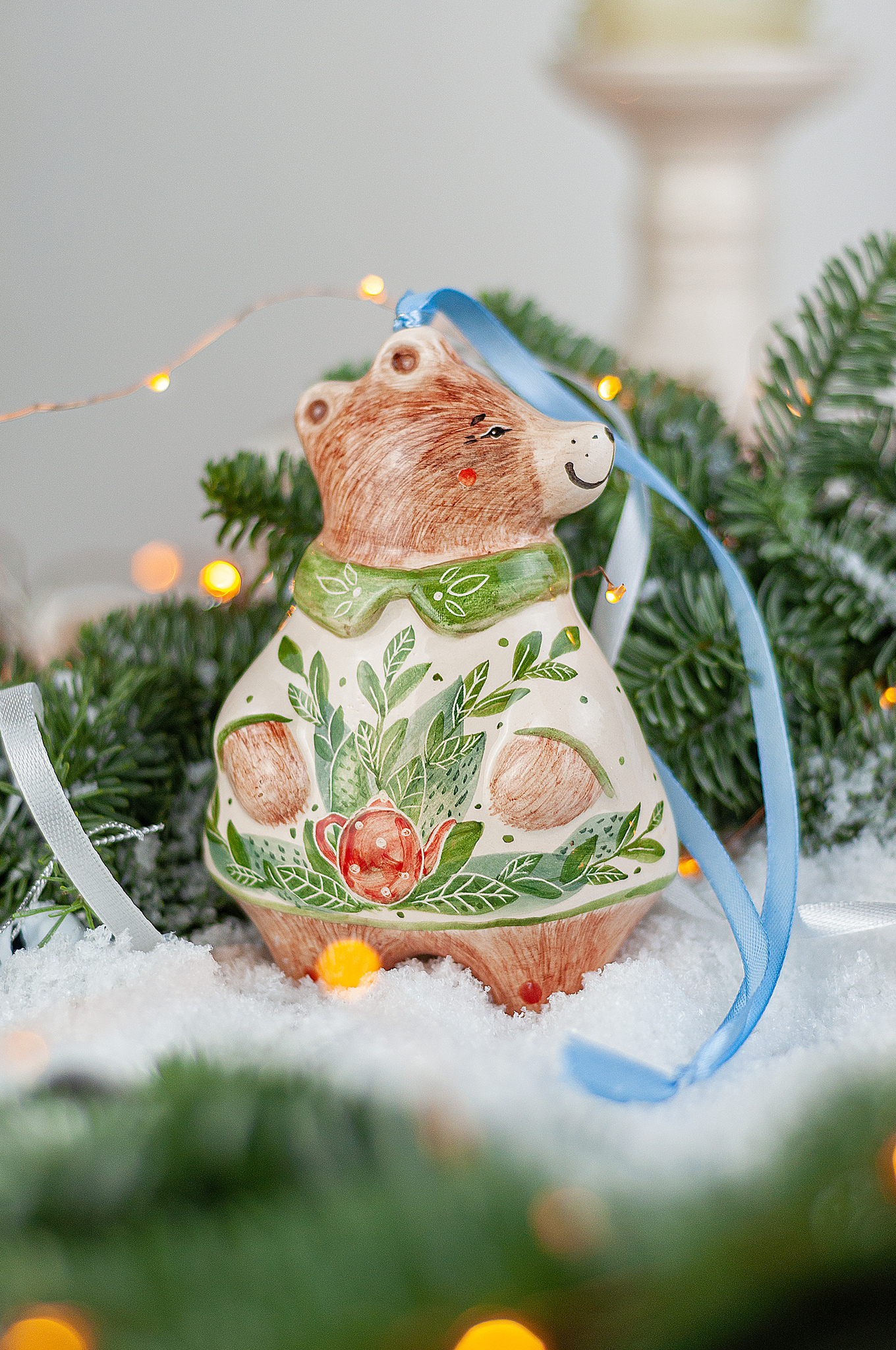 Керамическая елочная игрушка с Байкала "Медведица" , 14х10 см, Россия