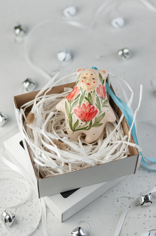 Игрушки созданы руками мастеров Байкальской студии керамики и покрыты прозрачной глазурью. Очень легкая и крепкая игрушка, благодаря особому способу обжига на высоких температурах.
