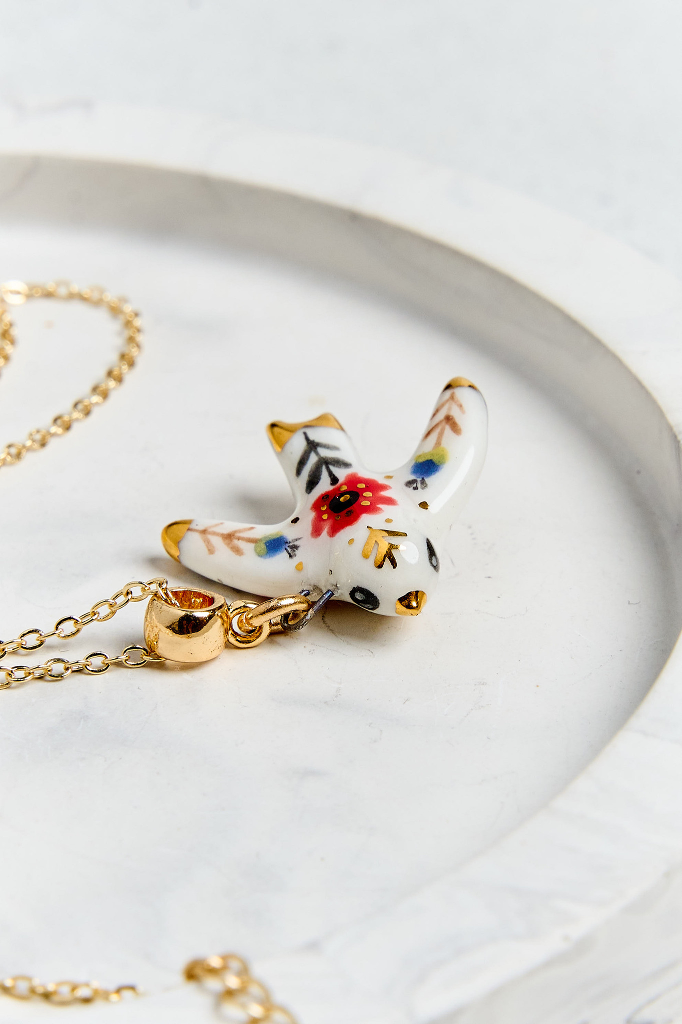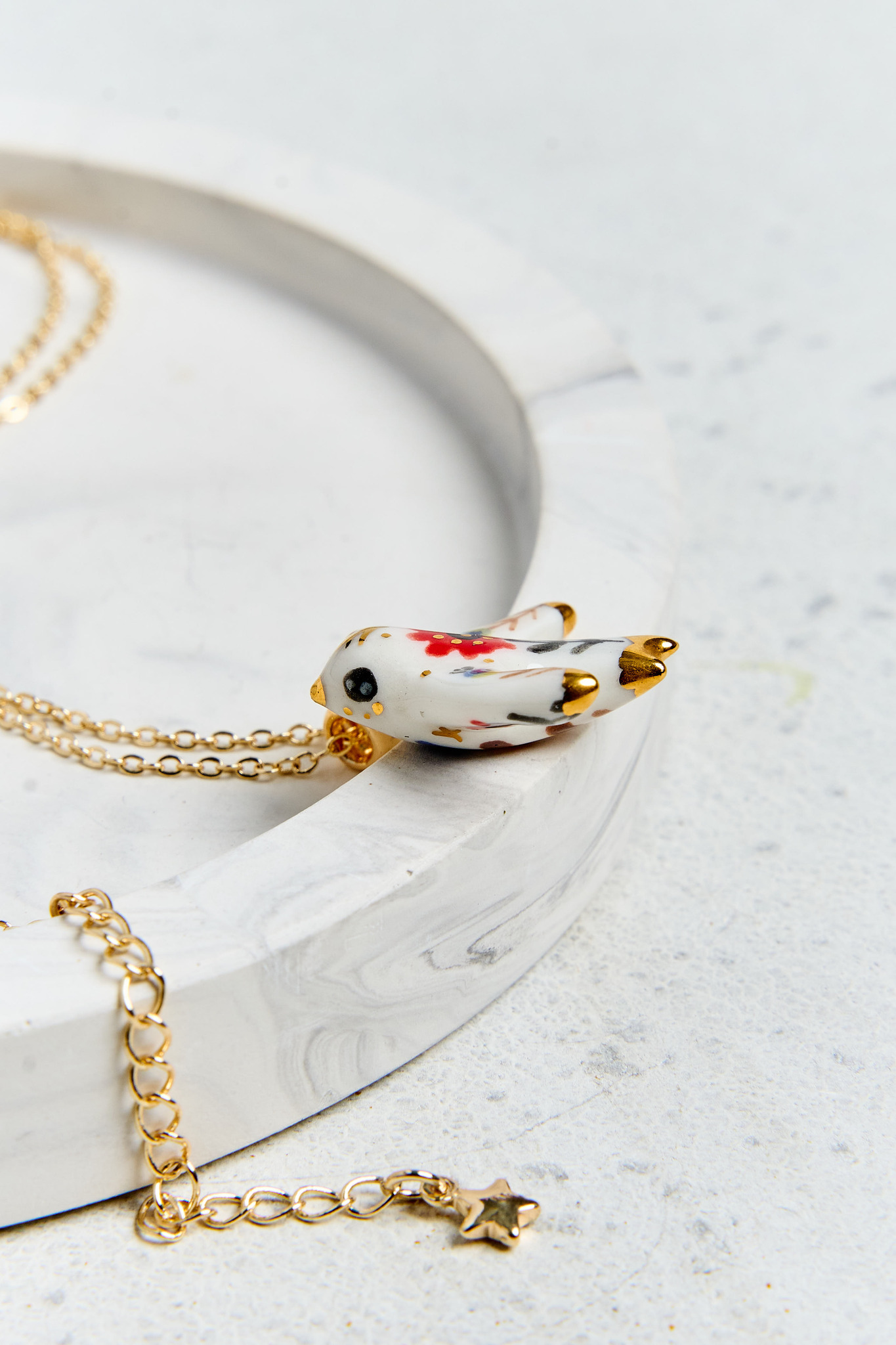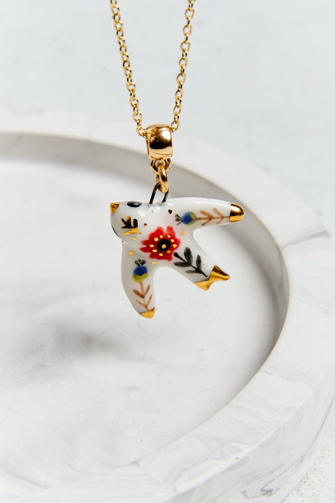 Кулончик из фарфора "Птичка", ручная работа, Беларусь.