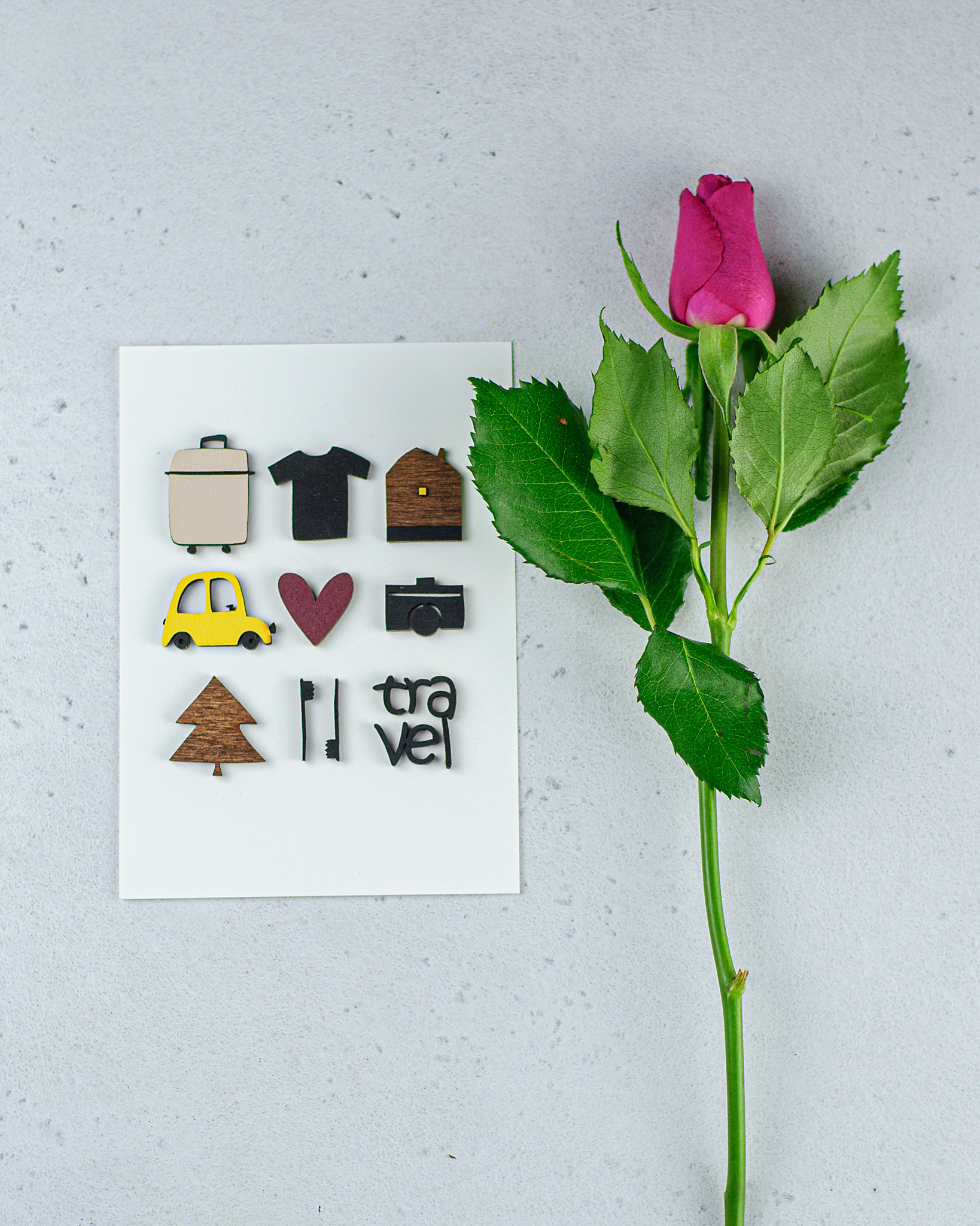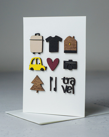 Авторская объёмная открытка с элементами из дерева «С любовью к путешествиям!».